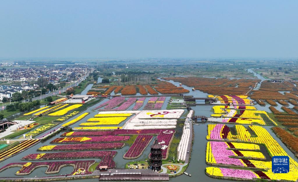 10月14日,游客在江蘇省興化市千垛景區賞菊游玩(無(wú)人機照片)。