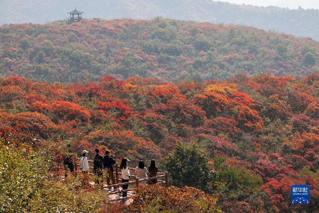 10月14日,游客在河南省焦作市博愛(ài)縣青天河靳家嶺景區欣賞紅葉。