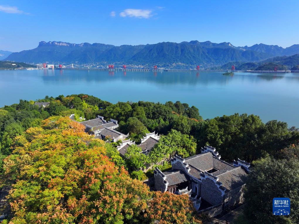 10月14日拍攝的湖北省秭歸縣屈原故里文化旅游區秋色(無(wú)人機照片)。