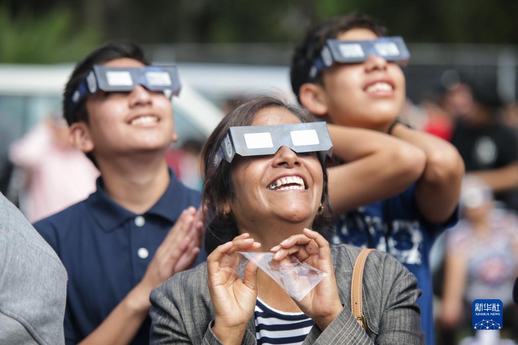 10月14日,人們在墨西哥首都墨西哥城觀(guān)看日食。