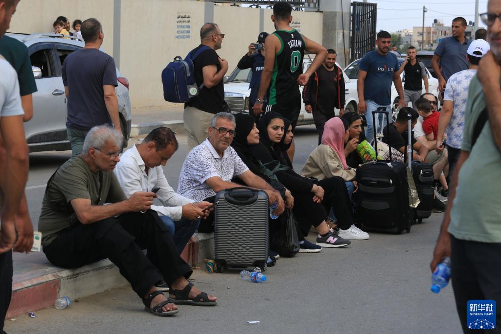 10月14日,外國公民在加沙地帶和埃及邊境的拉法口岸等待撤離加沙地帶。