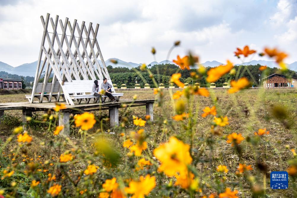 10月14日,游客在重慶市將軍村一處田間藝術(shù)景觀(guān)游玩參觀(guān)。