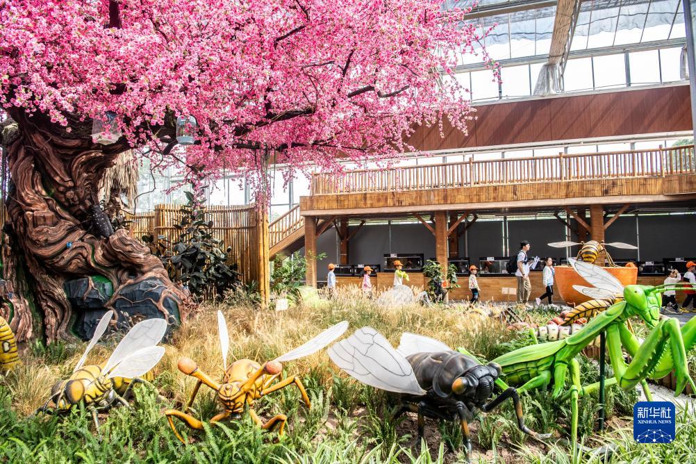 10月14日,小朋友在重慶市將軍村的“昆蟲(chóng)王國”里游玩參觀(guān)。