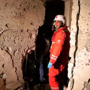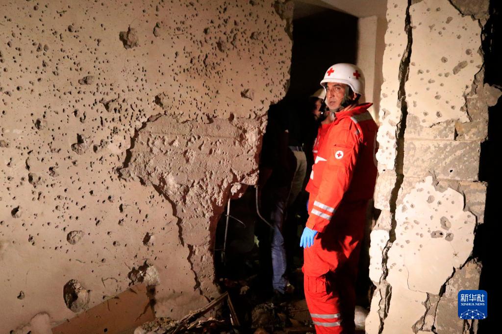 10月14日,在黎巴嫩南部薩巴阿鎮,救護人員來(lái)到遭以軍炮擊身亡的一對老夫婦家中。