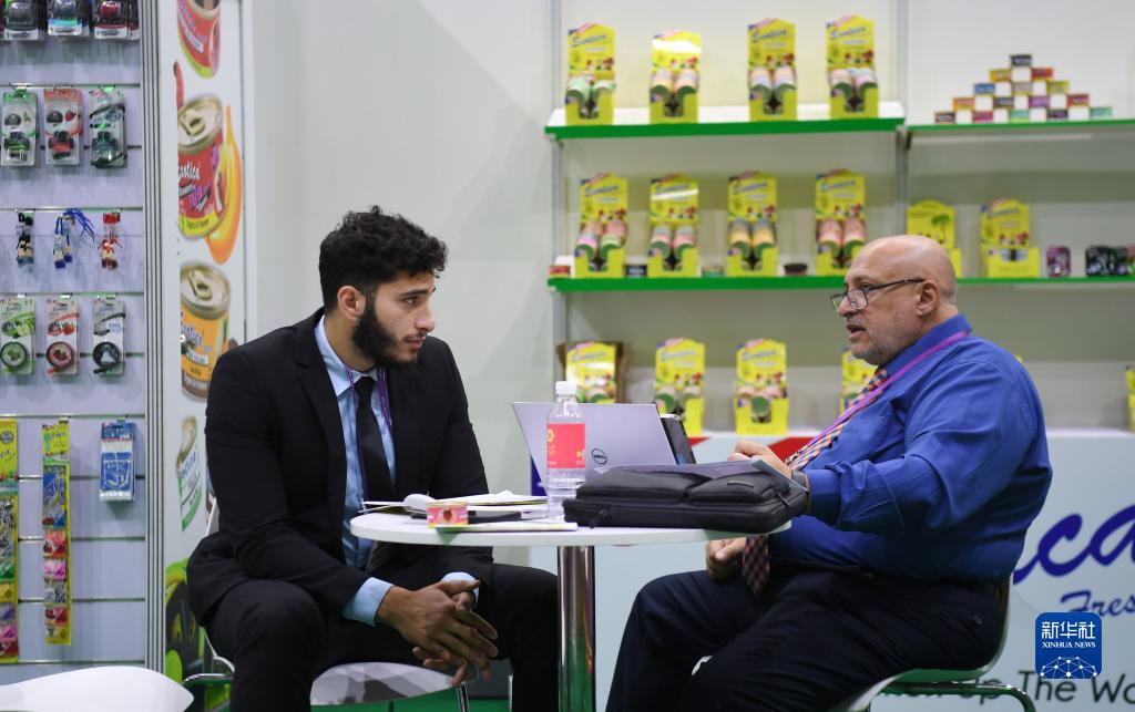 10月15日,進(jìn)口展區的參展商在洽談業(yè)務(wù)。