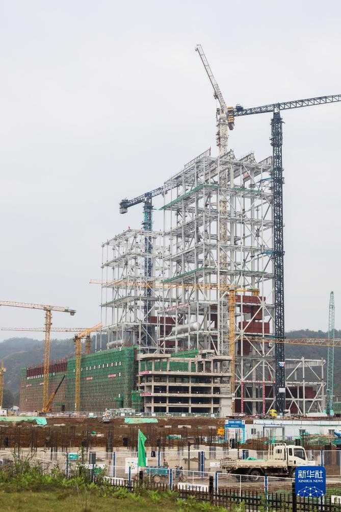 這是10月13日在甘肅省平?jīng)鍪徐`臺縣拍攝的靈臺電廠(chǎng)項目建設現場(chǎng)。