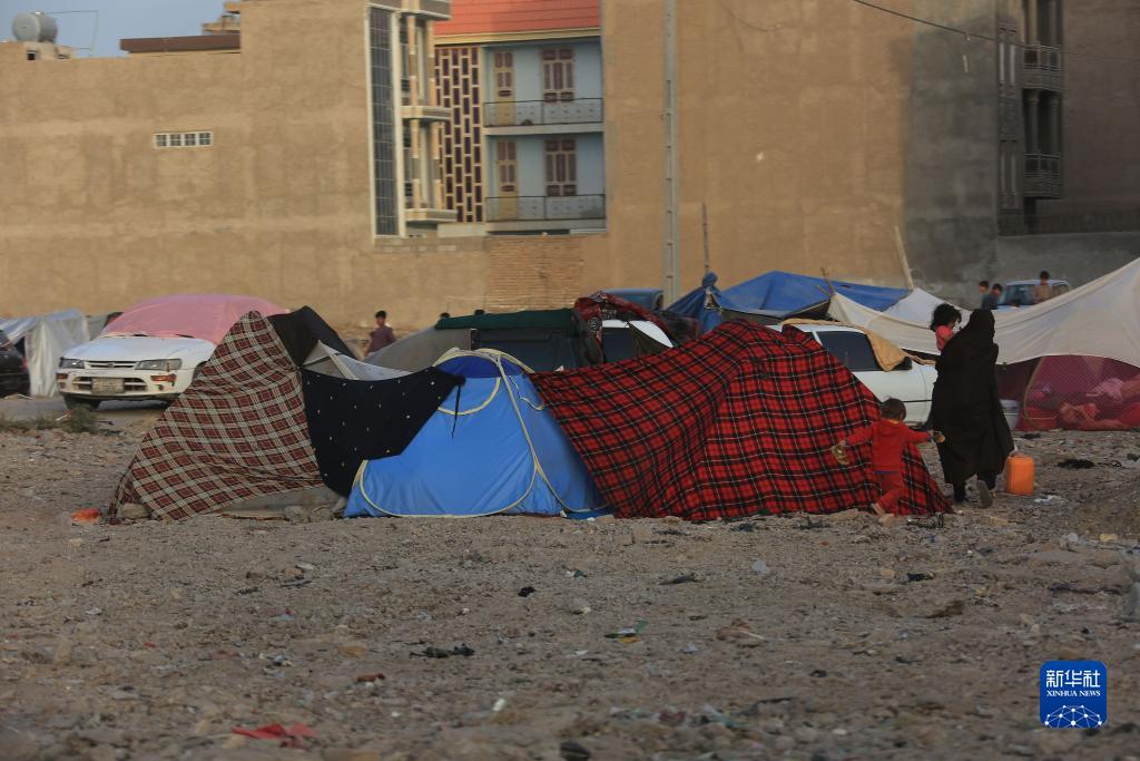 10月15日,阿富汗赫拉特省赫拉特市居民住在空地的帳篷中躲避余震。