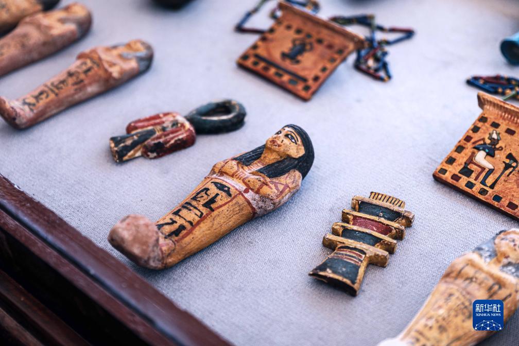 這是10月15日在埃及明亞省考古現場(chǎng)拍攝的出土文物。