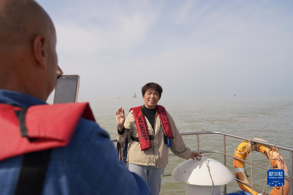 在山東省東營(yíng)市黃河入???,黃河匯入渤海。黃色的河水和藍色的海水之間形成了一條“分界線(xiàn)”,河黃海清,涇渭分明。