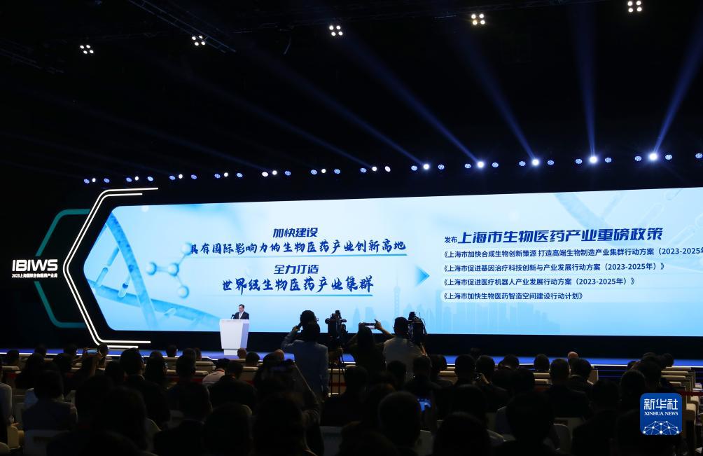 這是2023上海國際生物醫藥產(chǎn)業(yè)周開(kāi)幕活動(dòng)中舉行的上海市生物醫藥產(chǎn)業(yè)重磅政策發(fā)布儀式(10月16日攝)。