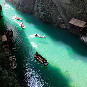 秋日,湖北省恩施土家族苗族自治州鶴峰縣容美鎮屏山村屏山旅游景區吸引眾多游客。屏山旅游景區河水清澈見(jiàn)底,舟行水上如懸浮空中,美如畫(huà)卷。