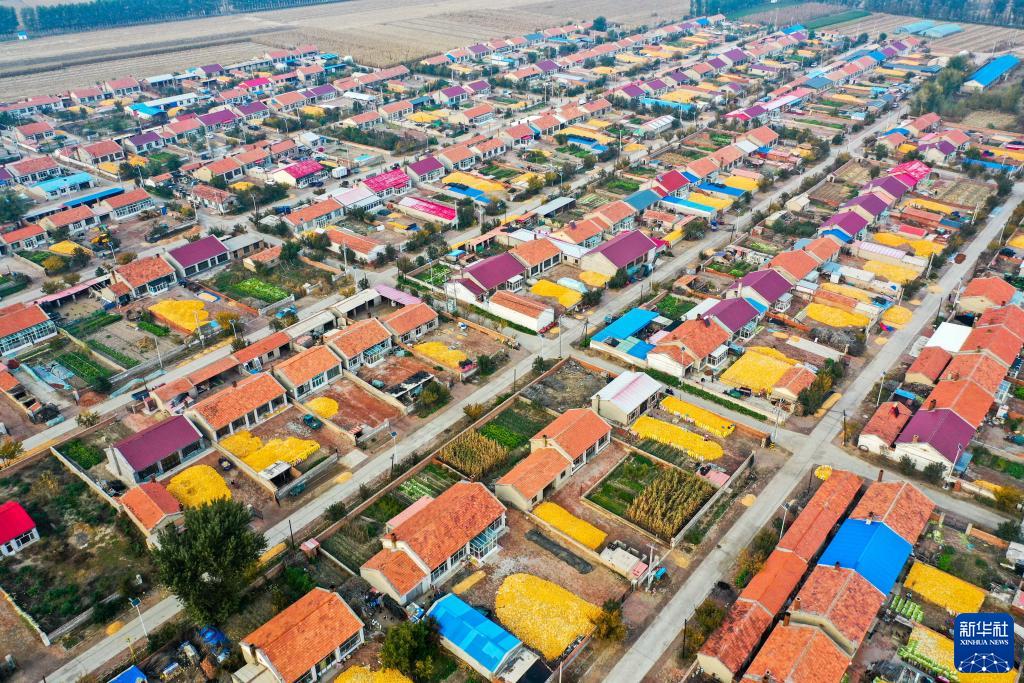 通遼市科爾沁區豐田鎮車(chē)力花村村民的小院里處處晾曬著(zhù)玉米(10月13日攝,無(wú)人機照片)。