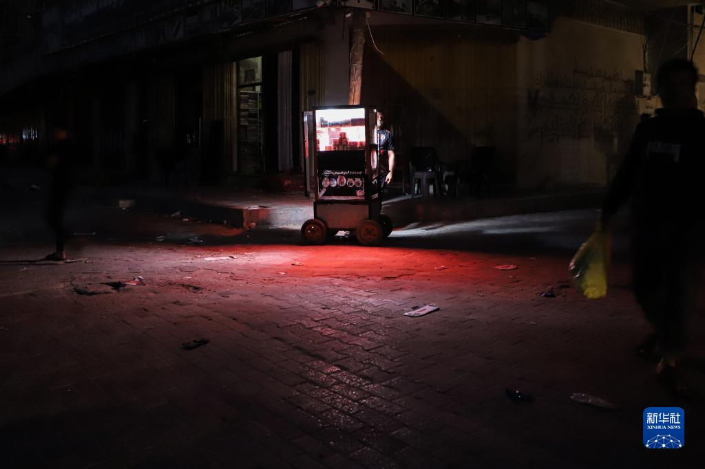 這是10月16日在電力短缺的加沙地帶南部城市汗尤尼斯拍攝的街景。