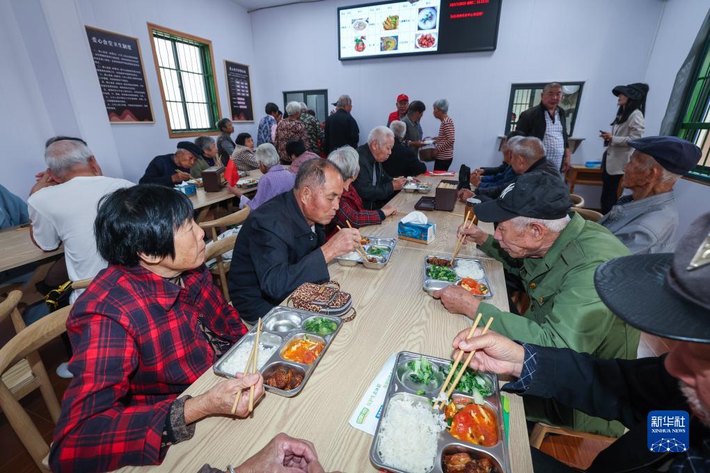 10月17日,老人們在東白湖鎮樂(lè )齡中心愛(ài)心食堂內用餐。