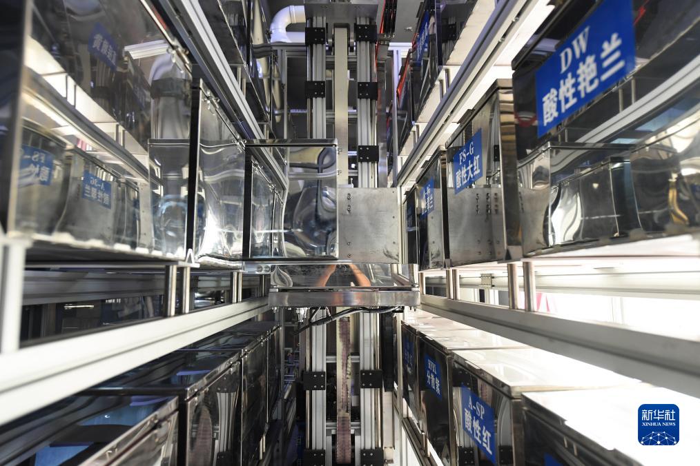 10月17日,浙江鴻大印染集團有限公司的智能機器人在進(jìn)行染料稱(chēng)料。