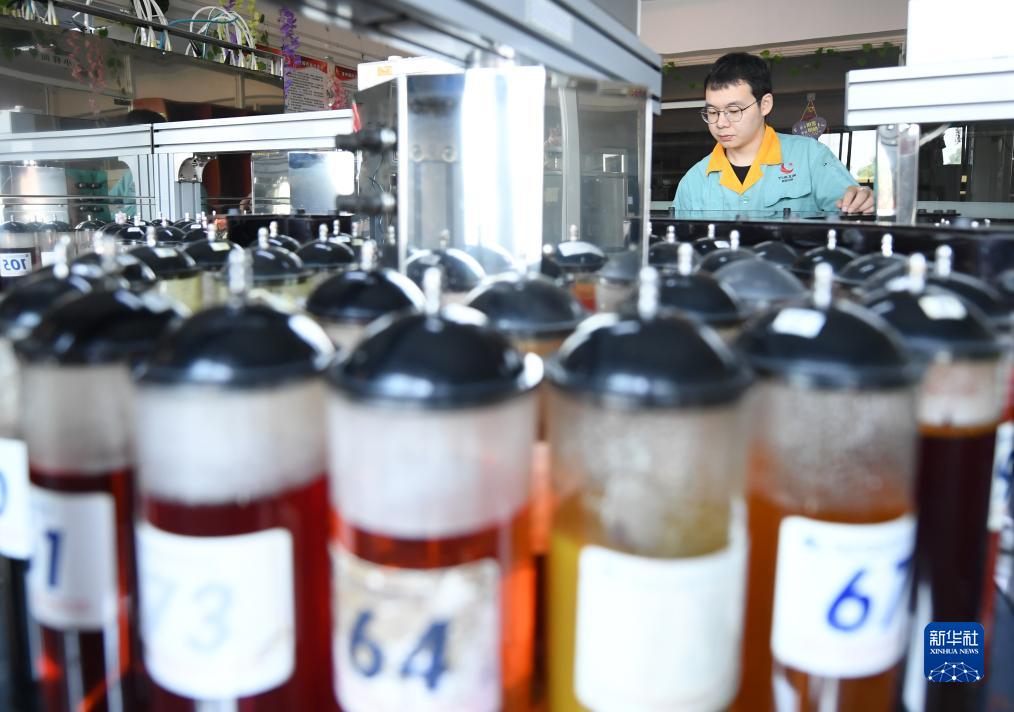10月17日,浙江越新印染有限公司的技術(shù)人員在進(jìn)行染料化料工作。