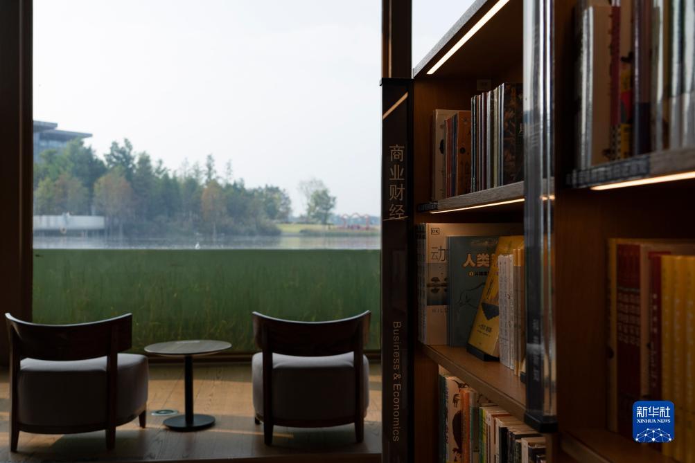 這是位于四川天府新區興隆湖畔的中信書(shū)店一景(10月16日攝)。書(shū)店四周被碧水青草環(huán)繞,臨湖一側是一面玻璃幕墻,一直延伸至水下。