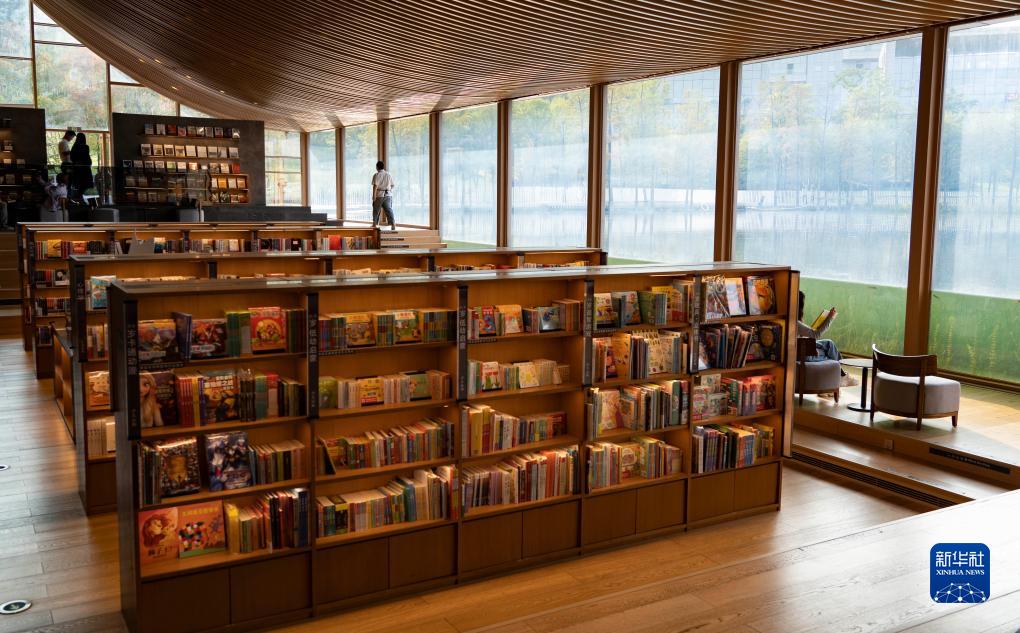 這是位于四川天府新區興隆湖畔的中信書(shū)店一景(10月16日攝)。書(shū)店四周被碧水青草環(huán)繞,臨湖一側是一面玻璃幕墻,一直延伸至水下。