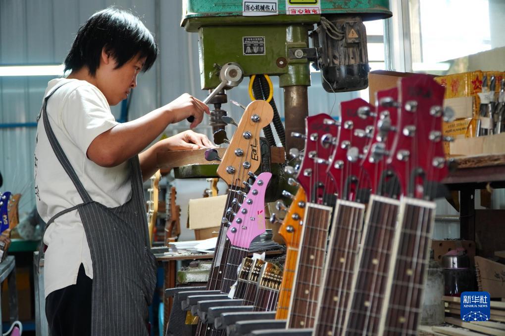 山東省昌樂(lè )縣鄌郚鎮是一個(gè)因樂(lè )器生產(chǎn)而聞名的特色產(chǎn)業(yè)小鎮,該鎮可生產(chǎn)電吉他、電貝司、尤克里里、班卓、曼陀鈴等8大系列近400個(gè)花色品種的樂(lè )器產(chǎn)品。