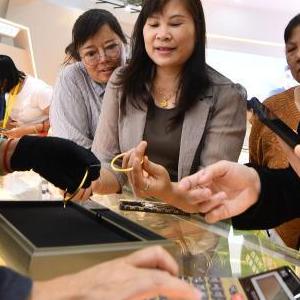 10月18日,觀(guān)眾在珠寶展上選購商品。