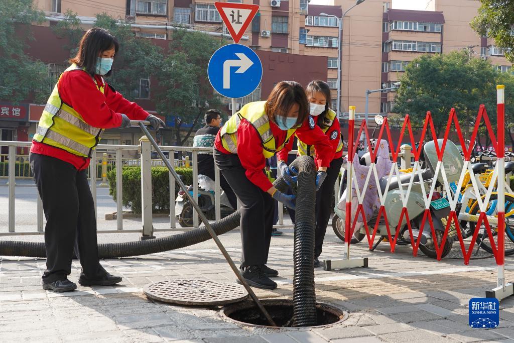10月17日,濟南市城肥清運管理一處女子清疏班職工在清理城肥。