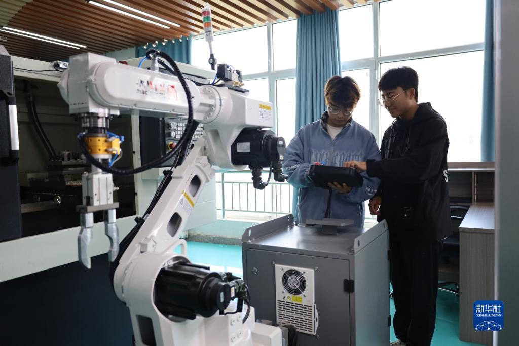 10月17日,在甘肅省蘭州新區科教園區,蘭州信息科技學(xué)院的學(xué)生進(jìn)行機械操作課程。