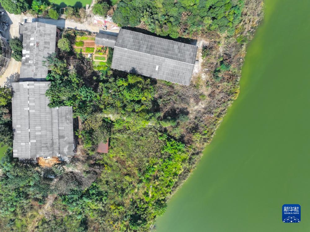 這是在湘潭市雨湖區姜畬鎮白鷺湖村拍攝的由閑置農房改造而成的“5G智慧小菇房”(10月18日攝,無(wú)人機照片)。