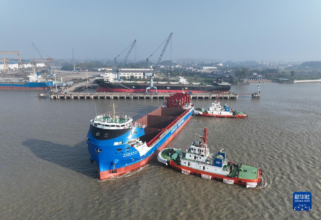 10月18日,中遠海運萬(wàn)噸級電動(dòng)集裝箱船離開(kāi)碼頭準備試航(無(wú)人機照片)。