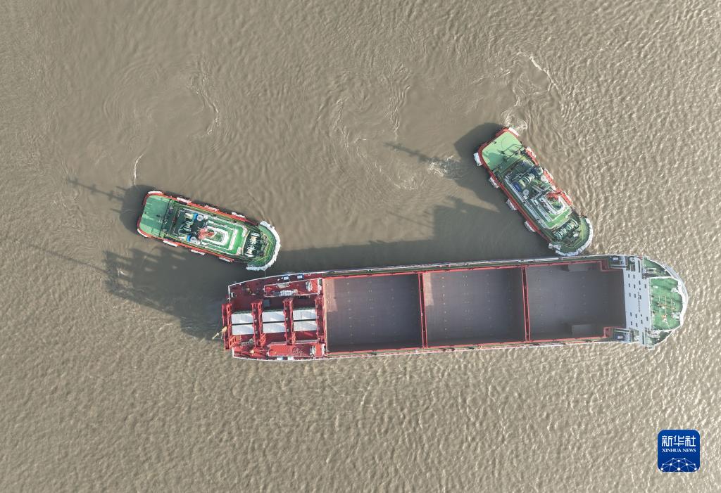 10月18日,中遠海運萬(wàn)噸級電動(dòng)集裝箱船離開(kāi)碼頭準備試航(無(wú)人機照片)。