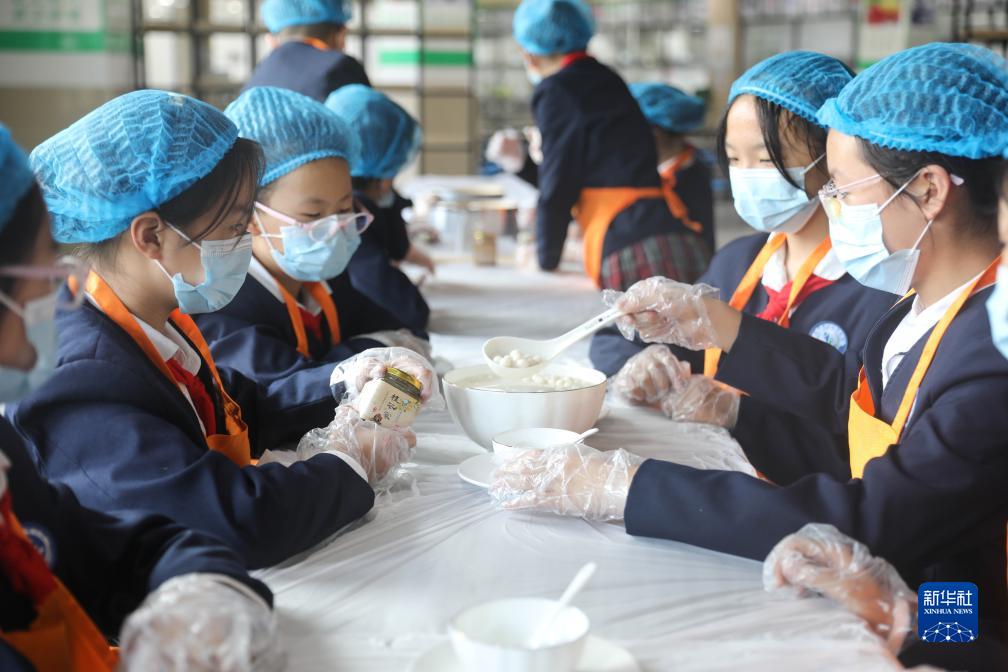 10月18日,學(xué)生在勞動(dòng)實(shí)踐課上制作美食。
