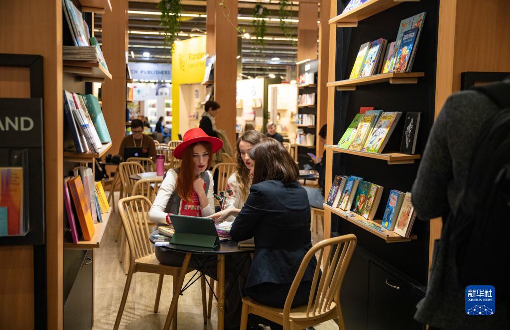 10月18日,人們在德國法蘭克福書(shū)展上洽談。