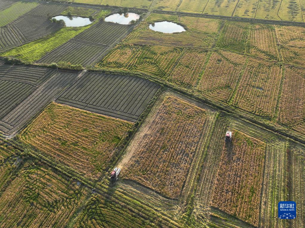入秋以來(lái),湖南各地晚稻陸續成熟,農民抓住好天氣搶收晾曬。