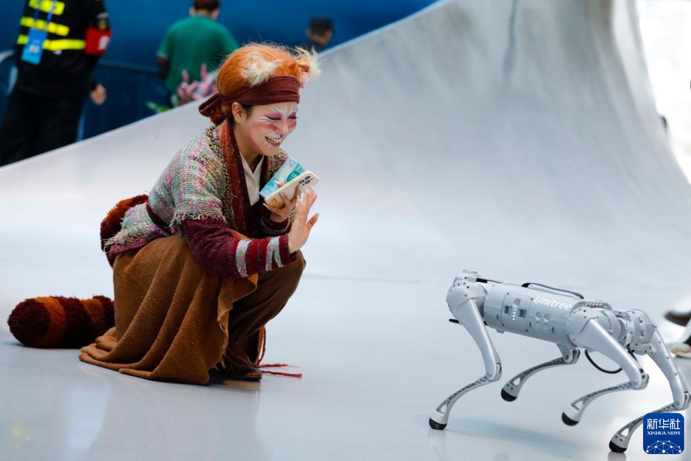 10月18日,在第81屆世界科幻大會(huì )主場(chǎng)館——成都科幻館內,一名演員與機器狗互動(dòng)。