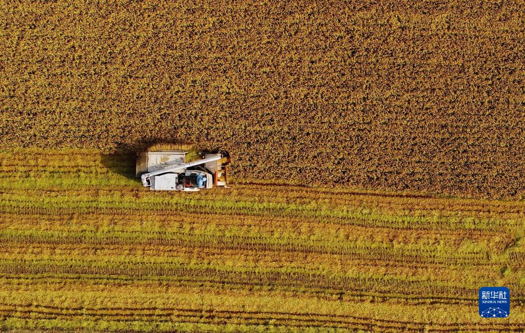 近日,河北省唐山市在鹽堿地上種植的水稻、玉米等秋糧迎來(lái)收獲季節,農民們開(kāi)始適時(shí)收獲、晾曬,呈現出一派繁忙的豐收圖景。
