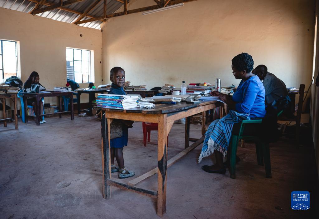 10月17日,教師在肯尼亞恩贊比亞小學(xué)為學(xué)生批改作業(yè)。