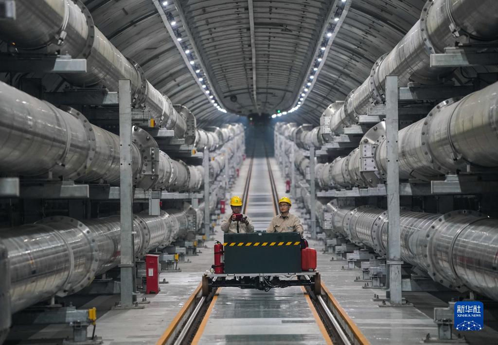 10月19日,國網(wǎng)江蘇電力工作人員在蘇通GIL管廊開(kāi)展例行巡檢。