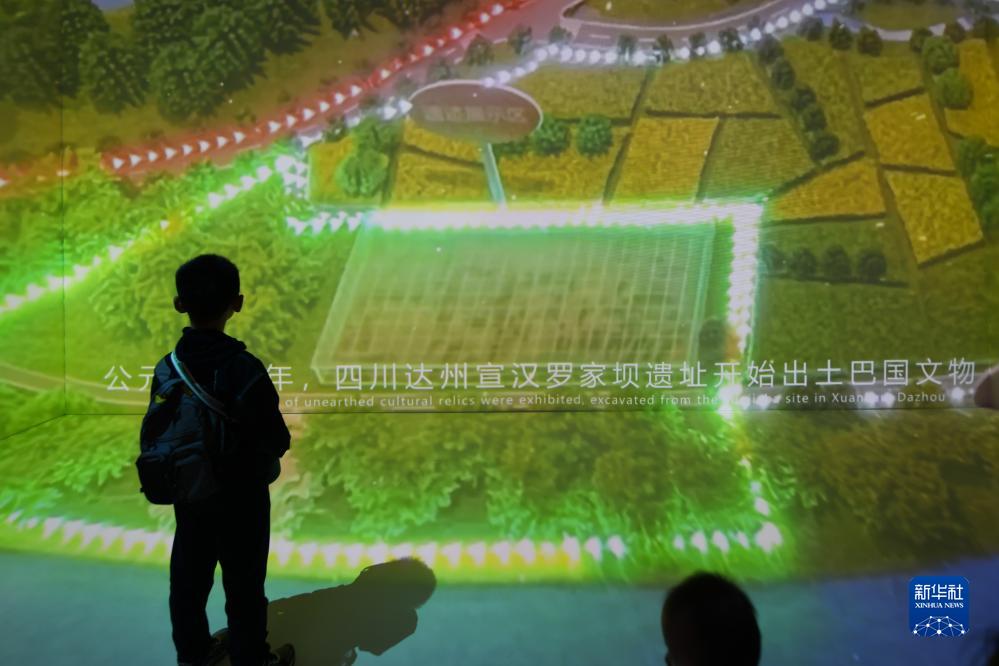 10月19日,在2023成都世界科幻大會(huì )主題展覽上,參觀(guān)者觀(guān)看宣漢羅家壩遺址視頻投影。