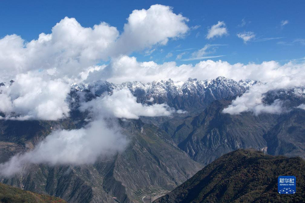 這是10月19日在舟曲縣境內拍攝的拉尕山及周邊秋景(無(wú)人機照片)。