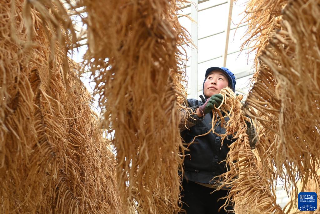 金秋時(shí)節,甘肅省定西市岷縣的黨參、黃芪等中藥材陸續豐收,當地中藥材企業(yè)組織工人加工晾曬。岷縣位于甘肅省南部,是西北中藥材主產(chǎn)區之一,全縣中藥材種植面積65萬(wàn)畝左右。