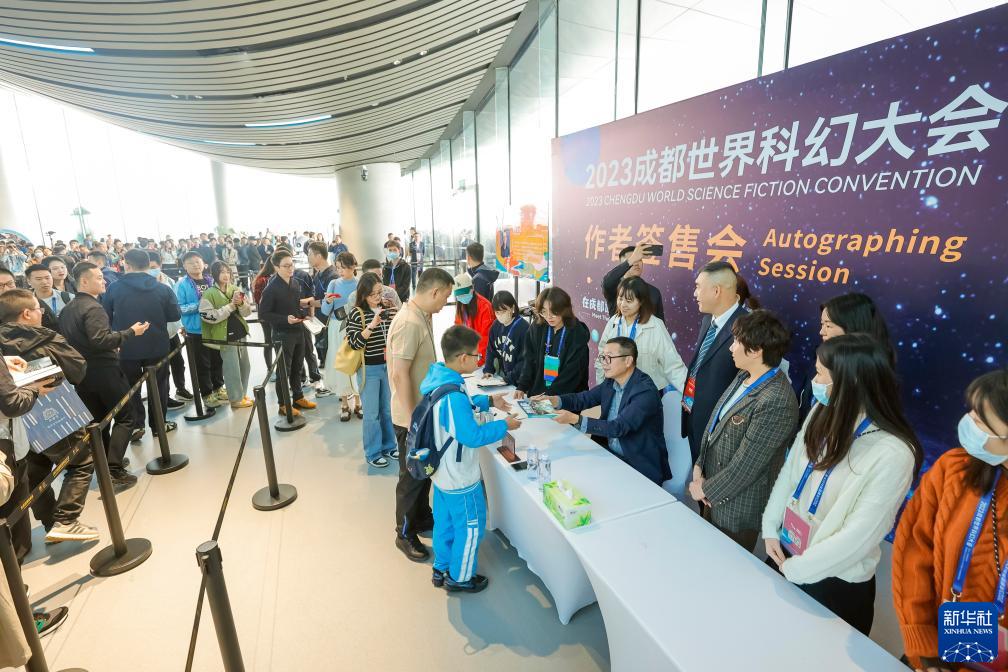 當日,2023成都世界科幻大會(huì )舉行簽售活動(dòng),本屆世界科幻大會(huì )榮譽(yù)主賓、科幻文學(xué)領(lǐng)域國際大獎——雨果獎獲獎作品《三體》作者劉慈欣到場(chǎng)簽售,吸引眾多科幻迷前來(lái)與其交流。