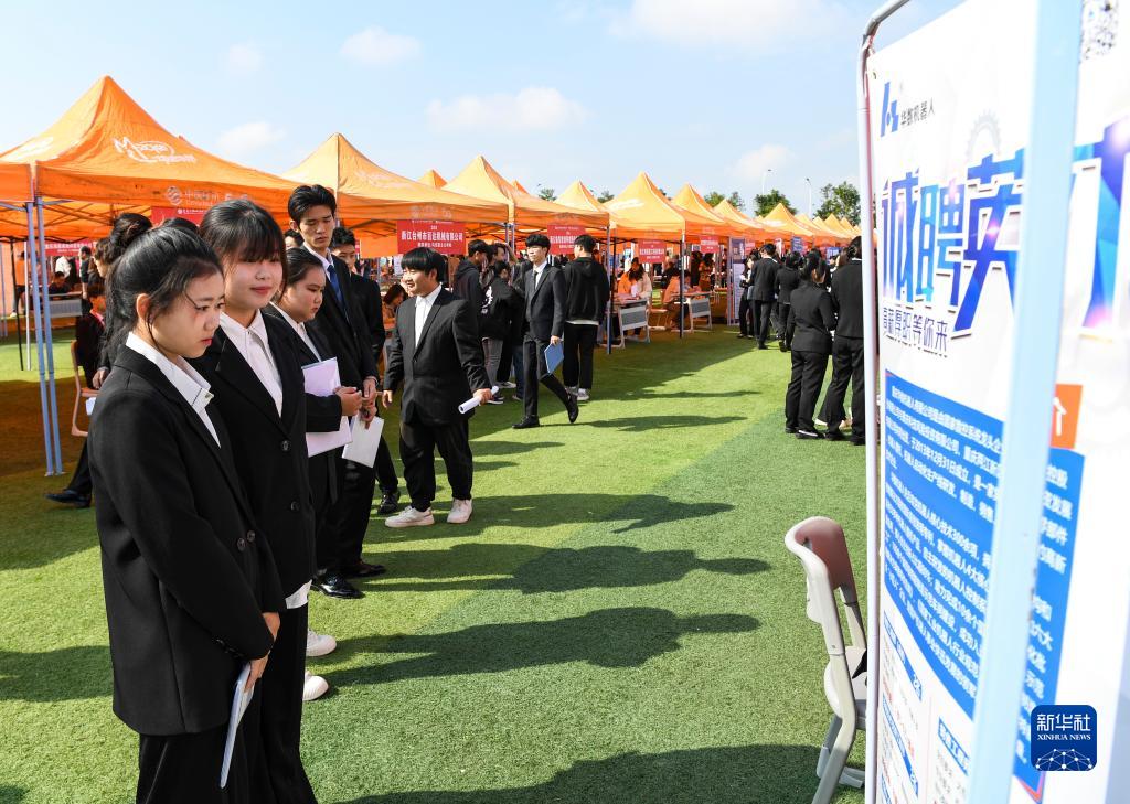 10月20日,在重慶智能工程職業(yè)學(xué)院,學(xué)生在雙選會(huì )上了解崗位信息。