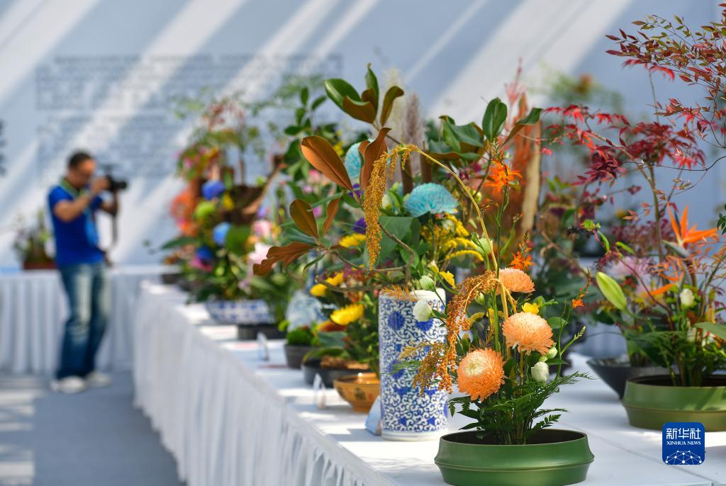 10月20日,市民在展會(huì )上欣賞展出的插花作品。