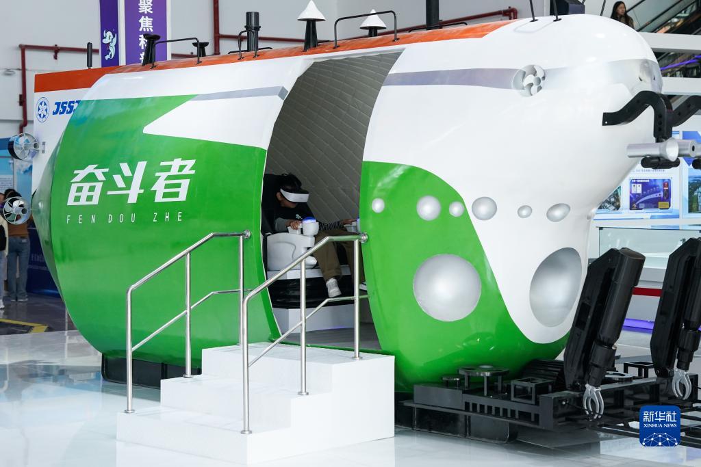 10月21日,一名小朋友在第十一屆中國(蕪湖)科普產(chǎn)品博覽交易會(huì )上體驗載人潛水器模擬座艙。