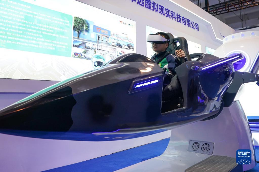 10月21日,一名小朋友在第十一屆中國(蕪湖)科普產(chǎn)品博覽交易會(huì )上體驗虛擬現實(shí)技術(shù)。