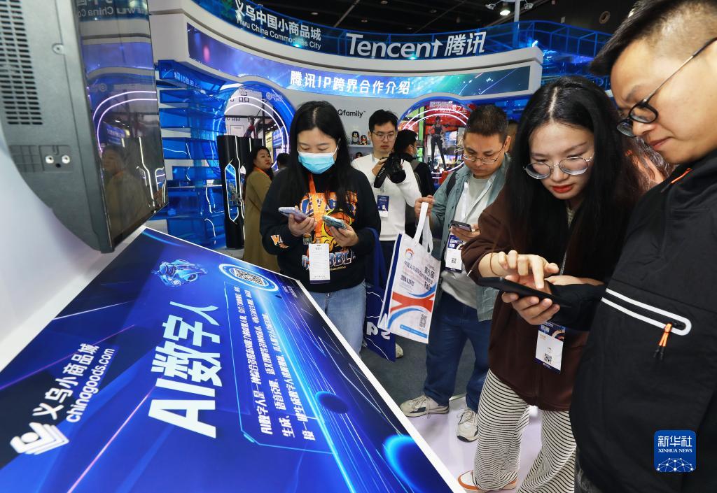 10月21日,在義博會(huì )“AI改變商業(yè)”主題展區,工作人員向客商介紹AI技術(shù)使用。