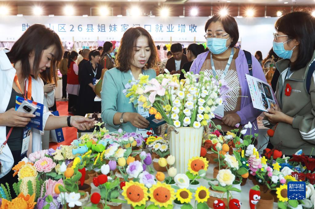 10月21日,客商在義博會(huì )現場(chǎng)采購仿真花。