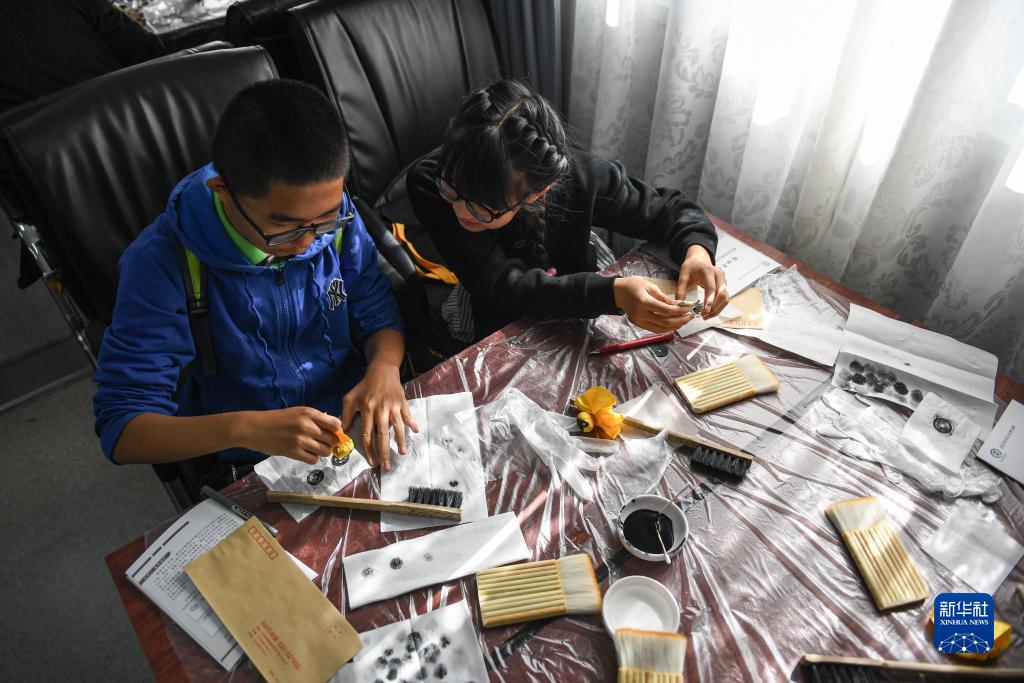 10月21日,小朋友在學(xué)習制作銅錢(qián)拓片。