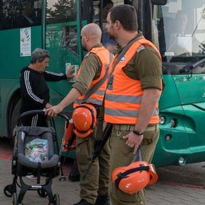 10月20日,以色列士兵在黎以邊境謝莫納鎮幫助疏散居民。