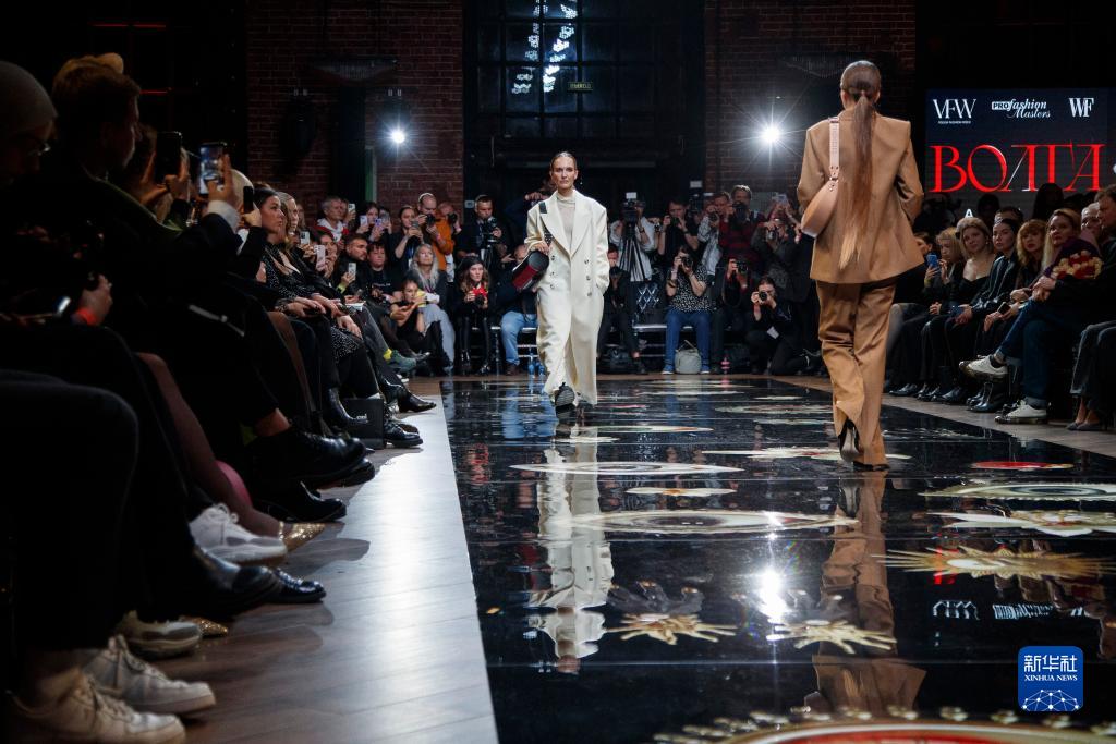 10月21日,模特在俄羅斯首都莫斯科舉行的伏爾加時(shí)裝周上展示時(shí)裝。