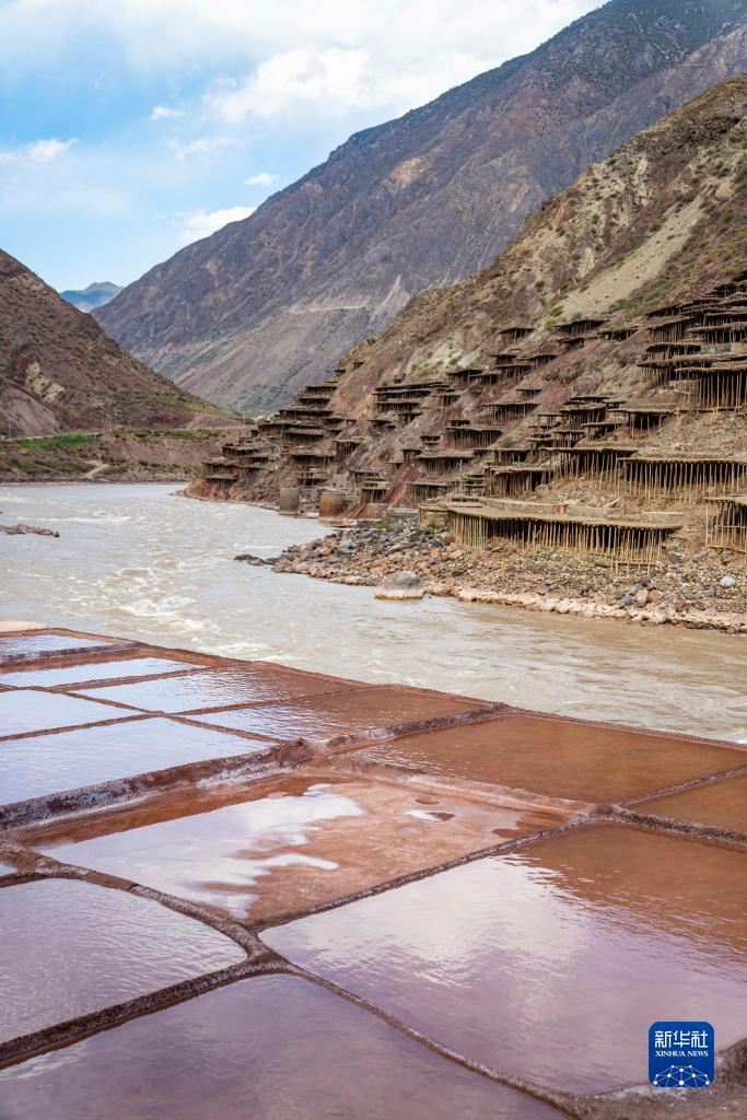西藏昌都市芒康縣納西民族鄉位于瀾滄江畔,當地從唐代開(kāi)始制鹽,距今已延續1300余年。鹽田在瀾滄江兩岸依山而建,由多根木柱搭架,架上用透水性強的泥土鋪成平面夯實(shí)。當地村民仍保持著(zhù)原始的手工曬鹽方式,他們從瀾滄江畔的鹽井、鹽池中取出鹵水倒入鹽田,經(jīng)陽(yáng)光蒸曬、風(fēng)干,結晶成鹽。遠遠望去,鹽田錯落有致,景色奇美。